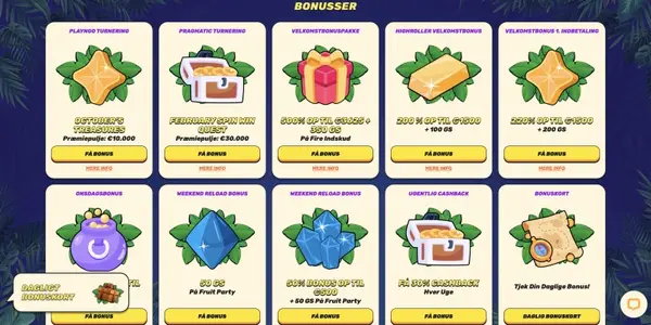 | Turneringer | Kontantpræmier + FS | Zen Tournament; Pragmatic Play Drops & Wins (EUR) |